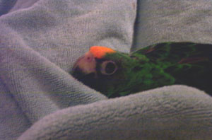 Bariki is a male Lesser Jardine's Parrot. He was hatched in February of 1997.