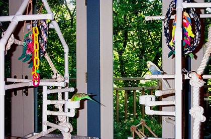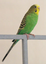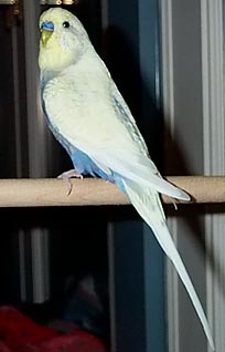 (Fall 2002 update. Nick died from cancer (most likely either a kidney or testicular tumor, which are sadly very common in budgies) in late August 2002. His exact hatchday is not known, but he was right around 5 years old.)