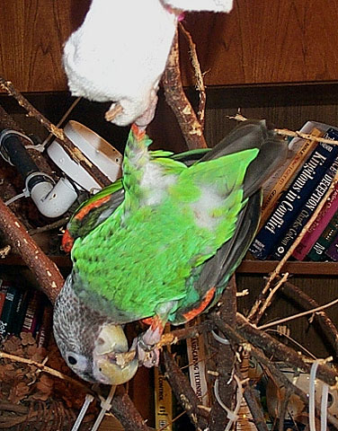 The Flock Homepage Tori's Page Bariki and Tori become friends Bariki's Page Nick and Keet's Page 2 birds and 1 treat "A Lap Bird and a Laugh Bird" - article on Bariki and Tori published in Companion Parrot Quarterly